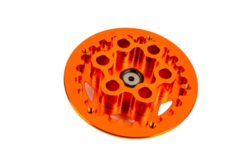 Piastra frizione CNC: Il piattello spingidisco è lavorato a CNC in ERGAL AL7075, una lega di alluminio di alta qualità scelta per la sua eccezionale resistenza meccanica, l'eccellente rapporto rigidità/peso e la stabilità a carichi e temperature elevati.