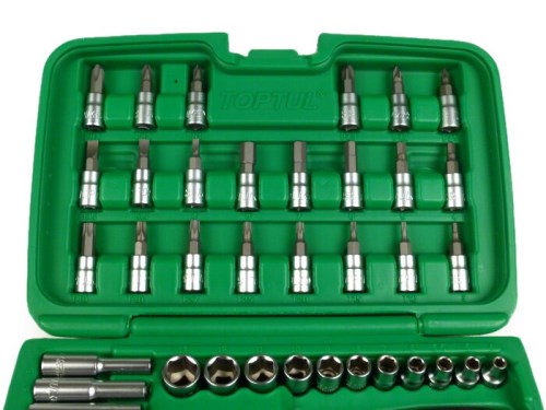 Chiave a tubo (Casella a cricchetto) -TOPTUL 1/4"- 4mm-13mm + Bits - 46 pezzi
