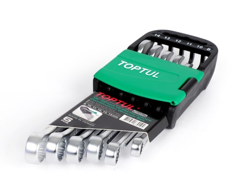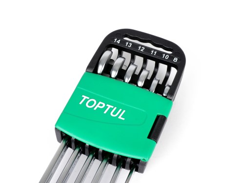 Chiavi, set di chiavi ad anello aperte a 15° -TOPTUL Hi-Performance, 6 pezzi- 8, 10, 11, 12, 13, 14mm