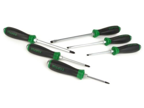 Serie cacciavite -TOPTUL Go-Thru- fessura: 5,5mm, 6,5mm, 8mm - impronta a croce: PH1, PH2, PH3 - 6 pezzi