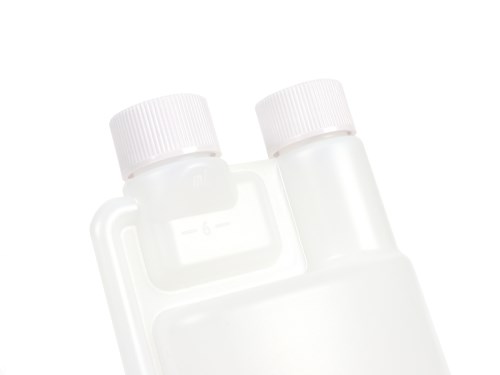 Questo pratico flacone di dosaggio assolve a due compiti: da un lato, funge da contenitore di stoccaggio per quantità fino a 250 ml e, allo stesso tempo, piccole quantità possono essere dosate in modo molto semplice e veloce. La camera di dosaggio superiore viene riempita semplicemente premendo il corpo inferiore del flacone e ha due linee di graduazione a passi di 5 ml fino a 10 ml. La quantità di liquido così misurata può poi essere comodamente svuotata, il contenitore rimanente viene chiuso in modo affidabile con il secondo tappo a vite. Quando si usa olio per due tempi insieme a 0,50 litri di carburante, i 10 ml danno come risultato un rapporto di miscelazione di 1:50. Una tazza di misurazione separata non è quindi necessaria. La bottiglia può essere riempita attraverso i due tappi a vite. Nel nostro assortimento troverete anche un flacone di dosaggio da 500 ml e 1000 ml dello stesso tipo, ma con camera di miscelazione da 25 ml / 60 ml, sufficiente per 1,25 / 3 litri di carburante (a 1:50) Ulteriori informazioni sul prodotto Materiale: polietilene HD-PE, alta densità Volume nominale in ml: 250 Forma: ovale tondo Chiusura: tappo a vite Colore: PE naturale Apertura: collo stretto AI-translation