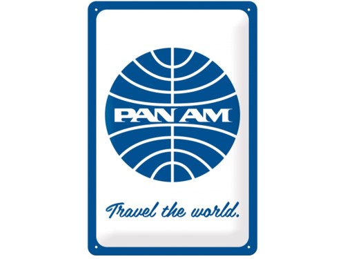 Pubblicità -Nostalgic Art- "Pan Am - Travel the world Logo white", 20x30cm