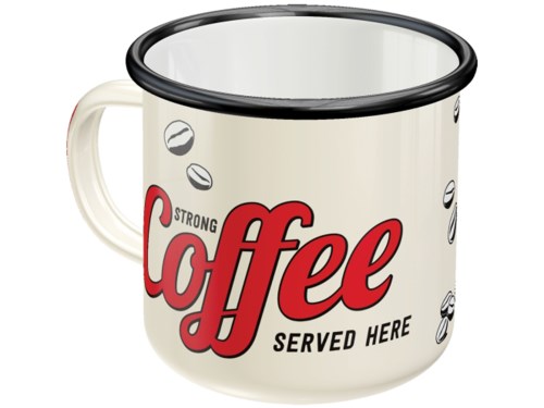 Tazza - Emaille -Nostalgic Art- "Strong Coffee Served Here", Ø=8cm x 8cm, 360ml