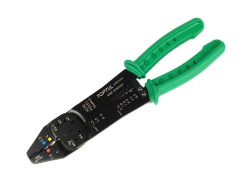 Pinza capicorda universale -TOPTUL- con funzione spelafili (-6,0mm²), taglia cavi e taglia perni